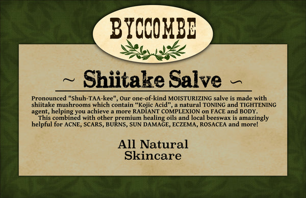 Featuring the amazing shiitake mushroom, our Shiitake Salve is a healing, moisturizing, & toning salve that leaves your skin soft, smooth, and relaxed. Shiitake mushrooms are being used in high end skin creams because they contain what is called Kojic acid. What this acid does is prevent the excess formation of melanin in the skin which makes for a brighter complexion. The astringent quality of the acid also helps the skin tighten, which makes it look more youthful.